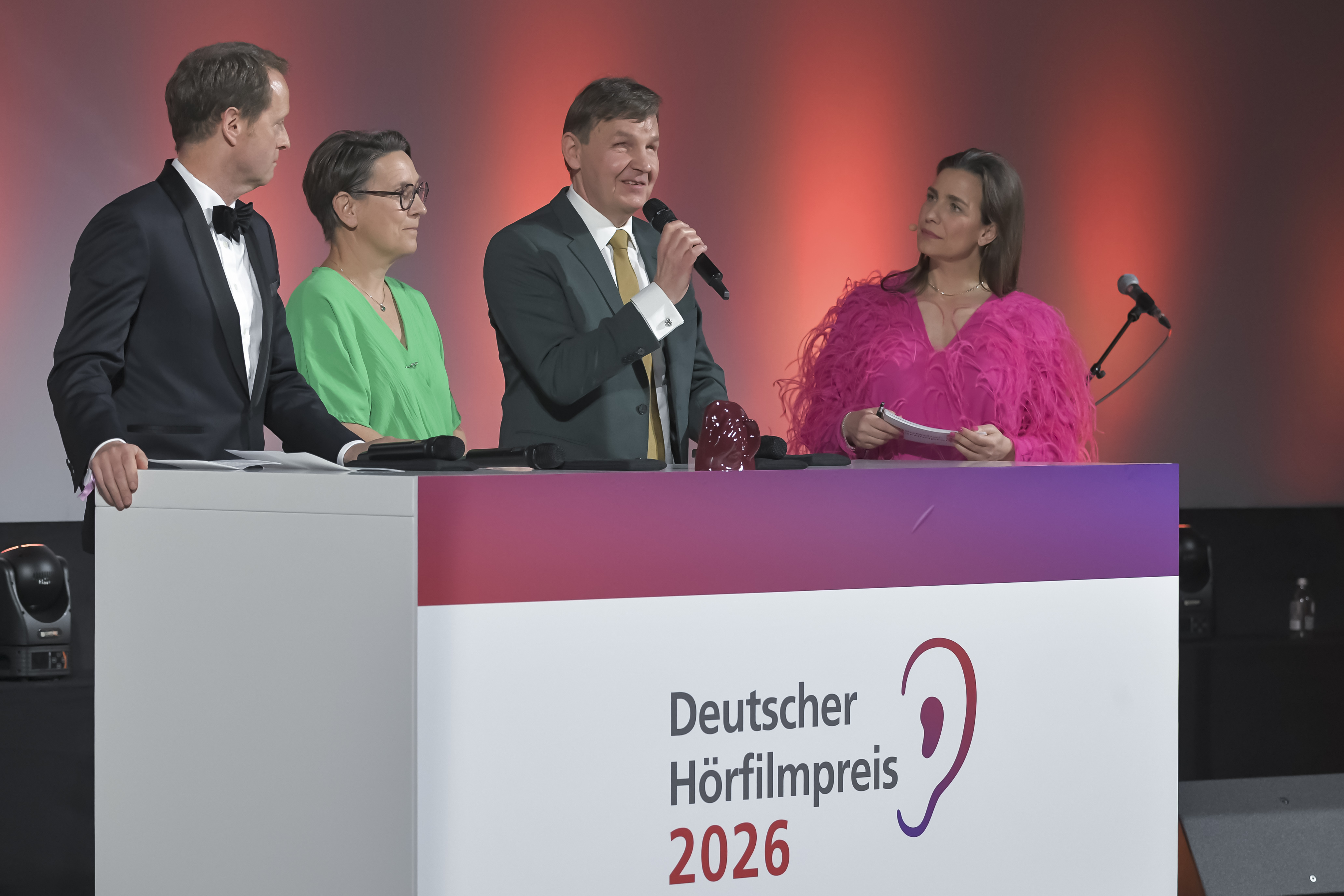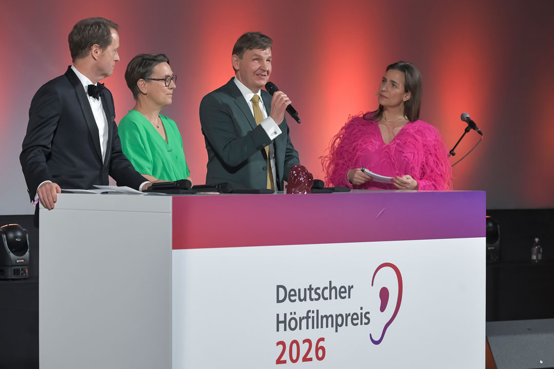 Hier finden Sie Pressefotos der Verleihung des Deutschen Hörfilmpreises 2026 zur honorarfreien Verwendung.